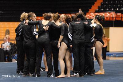 STANFORD, Calif. - The 15th-ranked Oregon State gymnastics team struggled at Stanford finishing third at the Cardinal’s Breast Cancer Awareness meet. OSU scored a season-high on vault in the final rotation but the damage was done in prior rotations. “We were almost trying too hard tonight,” said head coach Tanya Chaplin. “I told the team after floor that we could start now or we could wait until next week. They did a nice job to come back and finish on vault.” The Beavers, who had to count two falls on beam and another on the floor exercise, finished strong with the vault reaching the 49-point barrier for the first time this season. The Beavers were led by Mandi Rodriguez with a 9.900 and a career-high, 9.800, by Brooke Barclay and a return to the lineup by Yuki Lamb, who tallied a 9.850. During the Beavers’ first routine on floor, junior, Claire Pierce fell following her third tumbling pass and was unable to finish the routine due to a knee injury. Pierce will be evaluated upon the Beavers return to Corvallis. The Beavers return to Gill Coliseum next week to challenge No. 7 UCLA Friday at 7:00 PM. Tickets are available at www.osubeavers.com or by calling (800) GO-BEAVS. Team Results 1) SU 197.275 2) ISU 196.075 3) OSU 194.100 4) SJSU 193.175 OSU: VAULT: 49.175, BARS: 48.425, BEAM: 48.150, FLOOR: 48.350 VAULT: Rodriguez 9.900*, Lamb 9.850, Lanz 9.825, Barclay 9.800*, Smith 9.800, Devencenzi 9.325 BARS: Lanz 9.800, Rodriguez 9.750, Fitzgerald 9.700, Smith 9.675, Bolen 9.500, Chong 9.250 BEAM: Lanz 9.825, Chong 9.775, Smith 9.750, Barclay 9.400, Pierce 9.400, Rodriguez 9.325 FLOOR: Rodriguez 9.800, Bolen 9.775, Chong 9.700*, Devencenzi 9.700, Lanz 9.375, Pierce 8.975 All-Around: Lanz 38.825, Rodriguez 38.775
