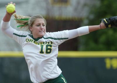 LAS VEGAS - Oregon senior Kristi Leiter drove in four runs and scored once while junior Melissa Rice came within two outs of pitching a perfect game to lead the Ducks’ softball team to a 8-0 win over UC Davis in their opening game of the Louisville Slugger Desert Classic Friday at SLC Park. Oregon accounted for three runs in the bottom of the first inning, two in the third and three more in the fourth as the game was shortened to four and a half innings due to the eight-run rule. Rice failed to record any strike outs but coaxed 11 ground ball from the 17 batter she faced to record her third win of the season in as many decisions as Oregon improved its record to 5-1. UC Davis dropped to 0-1. Leiter, Sari-Jane Jenkins, Jennifer Salling and Neena Bryant each had two hits, with Leiter’s two-run home run in the third inning providing Rice with all the cushion she needed. Salling also drove in three runs and scored one while Suzie Barnes scored twice to extend the Ducks’ winning streak to five games. Rice’s perfect game first came into jeopardy after retiring the first 11 batters before UC Davis’ Deanna Menapace hit a hard shot through the right side of the infield with two outs in the fourth inning for what appeared to be the Aggies’ first hit of the game. However the Ducks’ Bryant charged the ball from her right- field outpost and came up firing to first base for the third out of the inning. The Aggies finally broke through with one out in the fifth when Nikki Sheldon came off the bench to coax a walk to spoil the perfect game. Two batters later, Sarah O’Neill connected on a solid two-out single to left field before Rice forced Julie Stauder to end the game on a soft roller to first base. Oregon got on the scoreboard in the bottom of the first following a leadoff single and a stolen base by Barnes. She advanced to third on a ground out to second base by Jenkins and scored on a base hit from Salling. Bryant beat out a roller down the first-base line with one out and proceeded to steal second before Lovena Chaput walked. After Salling was tagged out at home trying to scored on a grounder to the shortstop, Leiter drove in Bryant and Chaput with a single to left. Oregon will face Seton Hall in the second game Friday night.