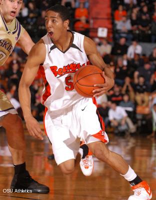 CORVALLIS - By: The Associated Press Courtesy: OSU Athletics Josh Tarver had 16 points and seven assists to lead Oregon State to a 73-65 win over Washington on Thursday night at Gill Coliseum. Marcel Jones added 15 points for the Beavers (11-18, 3-13 Pac-10), whose previous conference wins had come against Arizona State. Wesley Washington had 14 points. The Beavers had 14 steals, with four apiece from Tarver and Washington, and shot 42 free throws. Spencer Hawes had 22 points for the Huskies (16-11, 6-9), whose NCAA Tournament hopes are dim after three straight losses. Jon Brockman added 14 points and 14 rebounds and Quincy Pondexter had 13 points. The Huskies, who entered the game second in the conference in scoring behind Arizona, missed their season average by 13 points. The Beavers led 9-2 and 14-8 before the Huskies made a run toward the end of the half, taking their first lead at 20-18 on back-to-back scores from Hawes. The Beavers led 24-22 at halftime after Tarver's buzzer-beating 3-pointer. Oregon State made just 4 of 12 free throws in the first half and was outrebounded 23-12. The Beavers started quickly after the half. Oregon State's lead went to nine points on Jack McGillis' catch-and-shoot 3, 11 on an alley-oop from Tarver to Jones, and then 13 on McGillis' fast-break layup off a steal to make it 44-31 with 9:13 left. Brockman made two free throws for the Huskies but Jones countered with a 3 to push the lead to 14. That proved too big a deficit for Washington to recover from, and it got no closer than six points. McGillis had 11 points for the Beavers, who face No. 9 Washington State on Saturday.