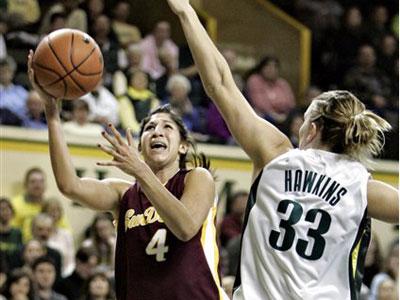 EUGENE - It’s been 92 years since basketball moved from a game played inside of a giant cage to the form we know today, but after witnessing a combined 54 fouls, fans could imagine Saturday’s win by No. 11 Arizona State over the Oregon Ducks was likely a lot similar to the old game than the new. The Sun Devils (16-2, 6-1 Pac-10) eventually wore down the Ducks (10-6, 2-4) in the physical matchup, prevailing 80-70 in front of a season-high 3,353 fans at McArthur Court. Free throws proved to be a big key for ASU, which went to the line 45 times, converting 34. It was the most free throw attempts by an Oregon opponent since Western Kentucky attempted 46 in a 92-90 win over the Ducks on Dec. 5th, 1997. Sophomore guard Briann January was 14-of-16 from the charity stripe and finished with 16 points despite 1-of-7 shooting from the field. Senior Emily Westerberg posted a team-high 19 points and made 8-of-11 free throws. The Ducks were 15-of-20 shooting free throws, including 7-of-11 in the second half. Another key in the game was rebounding, or the lack there of for UO. The Ducks were out-boarded 40-21 and did not have a single player with more than three. But even with those issues, Oregon managed to stay in the game and was within a two-pointer, trailing 63-61 with 4:20 to play. However, from that point on, the Ducks managed only two more field goals and saw three starters foul out as the Sun Devils scored 11 of their final 17 points from the line. Freshman Taylor Lilley’s 20-point effort, a game-high, was one of the bright spots for Oregon. She came off the bench and was 7-of-12 from the field, including 3-of-6 from three-point range in 29 minutes. Sophomore Tamika Nurse had 15 points before fouling out, and senior Cicely Oaks added 12 points and three rebounds. Senior Eleanor Haring, the team’s leading scorer at just below 15 points per game, was held to eight on 4-of-13 shooting. Outside of Haring, Oregon’s other post players were a combined 1-of-6 from the field. Arizona State jumped ahead 43-37 early in the second half before the Ducks strung together an 8-0 run, capped by an Oaks layup, for a 45-43 lead with 13:47 to play. Oregon’s last lead would come at 49-47 with 12:12 remaining. Despite 13 turnovers in the opening 20 minutes, Arizona State took a 34-33 lead into halftime. The Sun Devils held an 18-7 rebounding edge and shot 50.0 percent on 11-of-22 shooting. Oregon made 44.0 percent of its first-half attempts as both teams combined for 25 fouls in the opening period. Senior Aubree Johnson was a perfect 6-of-6 from the field and led all scorers with 12 of her 16 points on the night. Lilley had eight points at the break for UO. The Ducks held the early first-half lead until the 9:08 mark when sophomore Briann January hit a pair of free throws to put the Sun Devils on top 20-19. UO responded with a 6-0 run on buckets by Lilley and junior Kaela Chapdelaine, and two free throws by Nurse, but ASU ripped off the next eight for a 28-25 lead. Oregon hits the road next week to take on No. 10 Stanford on Thursday in Stanford, Calif. The Cardinal (14-3, 7-0) are the lone unbeaten team in Pac-10 play and have won 12 games in a row