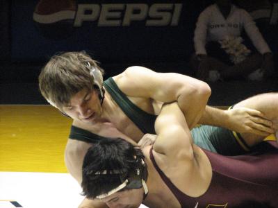 EUGENE - Shuffling their lineup due to an injury at 174 lbs., the Ducks fell to the Arizona State Sun Devils, 27-14, Sunday afternoon in a Pac-10 dual meet held at McArthur Court. Due to Ronnie Lee's fractured leg, the Ducks were forced to switch around their lineup a bit as freshman Zach Frazier got the start at 157 lbs., Kyle Bounds moved up to 165 lbs. and Jake McCoy wrestled at 174 lbs. Frazier, wrestling in his first Pac-10 dual match and against the No. 5 ranked 157 pounder in the nation, Brian Stith, battled hard but was ultimately overpowered by last years national runner-up. Stith collected the 14-4 major decision, his sixth major decision victory in his last seven matches and his eleventh straight victory overall. "We took the risk that we would switch around our guys and that they would rise to the occasion because we did not want to give up those six points at 174 lbs.," head coach Chuck Kearney said. "We'd rather give up as few points as possible and wrestle their top-ranked guy with someone young than give six free points to someone who we probably could beat." The Ducks once again got quality matches from the top of their lineup as Joey Lucas started off the night with a strategic 2-0 win over Shawn Jones. Senior Justin Pearch would follow the act, with an 11-5 decision at 141 lbs. in a more up tempo match. Jeremy McLaughlin got the 6-0 shutout victory to complete the Ducks early run and make the team score 9-0, picking up the decision over Chris Remsen. No. 5 ranked Brian Stith of Arizona State would stop the Ducks' run, however and the Ducks would not get another match win until Chris Dearmon collected a pin at the heavyweight position halfway through the third period in the penultimate match of the night against Quinton Pruett. Ryan Dunn would finish out the match in entertaining fashion, but would ultimately fall in a decision 6-2. Notes: Oregon was penalized a point for unsportmanlike conduct after an assistant coach rushed onto the floor prematurely to assist Kyle Bounds after he was pinned in the 165 lbs. match. ASU 27, Oregon 14 133: Lucas (UO) dec. over Jones (ASU), 2-0 141: Pearch (UO) dec. over Galvan (ASU), 11-5 149: McLaughlin (UO) dec. over Remsen (ASU), 6-0 157: Stith (ASU) major dec. over Frazier (UO), 14-4 165: Gaughan (ASU) fall over Bounds (UO), 2:28 174: Renzi (ASU) major dec. over McCoy (UO), 14-5 184: Gifford (ASU) fall over French (UO), 3:22 197: Trulson (ASU) maj. dec. over Robertson (UO), 10-0 Hwt: Dearmon (UO) fall over Pruett (ASU), 6:53 125: Espinoza (ASU) dec. over Dunn (UO), 6-2