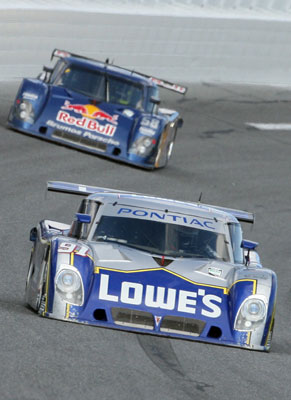 DAYTONA BEACH, Fla. - For the first time in history, the finish in the 45th Rolex 24 At Daytona came down to a three-car battle on the same lap. The No. 01 TELMAX Chip Ganassi Racing with Felix Sabates Lexus Riley with driver Scott Pruett outlasted the No. 11 SAMAX CITGO Pontiac Riley and Patrick Carpentier and the No. 10 SunTrust Racing Pontiac Riley and Jan Mangunssen to win the Rolex 24. It's the second straight victory in the Rolex 24 for owner Chip Ganassi and the second Rolex 24 victory for Pruett, who won the twice-around-the-clock challenge back in 1994 with Nissan. For Salvador Duran and Juan Pablo Montoya, the other co-drivers on the No. 02 car, it was their first Rolex 24 triumphs. "It's like winning a championship in one race," Ganassi said. The No. 02 car had a 1 minute, 14.749 second margin of victory over the No. 11 while the No. 10 SunTrust Pontiac Riley, which battled clutch and brake problems in the final hours, finished third. In the final hours of the Rolex 24, the three lead lap cars were nose to tail with Montoya behind the No. 01, Angelelli in the No. 10 and Ryan Dalziel in the No. 11. "It was incredible after 20 hours there were three cars on the lead lap, three really fast cars," Montoya said. "It was like qualifying on every lap over and over again." The Chip Ganassi Racing sister car, the No. 02, was also a late-race contender but Memo Rojas crashed entering Turn 1 when attempting to pass a GT class car. Montoya becomes the first driver since Mario Andretti to win a Rolex 24, a Formula One race, a Indianapolis 500, and a Champ Car/IndyCar Series title. "It's a big deal," Montoya said. "But I'm back here in a couple of weeks for the Daytona 500. Hopefully, we can do something about that as well."