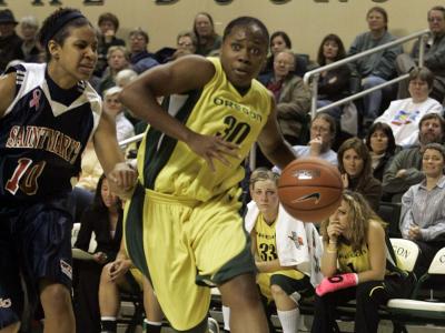 LOS ANGELES - The University of Oregon women’s basketball team led by two points and had the ball with 21 seconds to play in regulation, but couldn’t close things out against USC on Friday night at the Galen Center, falling 79-71 in double overtime. The Ducks were called for a five-second violation on an inbounds play in the waning moments, giving USC a chance to play for a final shot. Senior guard Shay Murphy took advantage, tying the score at 52-52 on a short jumper with a little more than 10 seconds left and sending the game into overtime. Murphy than proceeded to score 13 of her game-high 26 points in the overtimes, which included three crucial 3-pointers, bumping the Women of Troy’s record to 8-7 overall and 2-3 in Pac-10 play. Oregon moved to 9-4, 1-2. “It’s disappointing, but I can’t fault our effort tonight,” said sixth-year head coach Bev Smith. “We really battled out there and gave ourselves a chance to win. “We can’t let this loss get us down because we’ve got a lot of games left to win.” The Ducks nailed a season-high 14 three-pointers, but USC tightened its defense enough to steal back a slim lead late in the second half. The Ducks’ 10th 3-pointer of the game, scored by senior guard Cicely Oaks, grabbed back the advantage for Oregon, 48-46, with 5:13 to play. USC took a brief one-point lead on a three-ball from Jamie Hagiya with 1:42 to play, but Oregon senior Carolyn Ganes fired back from long distance 30 seconds later for a 52-50 UO lead. After the Ducks jumped ahead by six points in the first extra period, Murphy nailed two 3-pointers in the last 1:30 to pull USC even and force a second overtime. She then added another trey to go with four free throws as USC pulled ahead to secure the win. Senior Eleanor Haring led UO with 17 points. Oaks finished with 14 and was a perfect 4-of-4 from three-point range. Ganes added 11 off the bench and junior Kaela Chapdelaine scored 10 on 3-of-4 shooting from behind the arc. Murphy was joined by two teammates in double figures as senior post Chloe Kerr had 14 and Higiya ended with 13. Murphy and Kerr shared the game-high in rebounds with eight apiece. The Ducks will look to regroup on Sunday, when they face UCLA (8-9, 2-3) at Pauley Pavilion at 2:00 PM. The Bruins were dumped by Oregon State on Friday, 56-52.