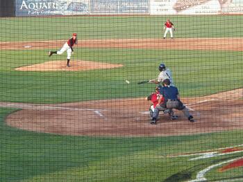 KEIZER - The Eugene Emeralds are on a two game winning streak, unfortunately those wins are coming against what was the hottest team in NWL baseball the Salem-Keizer Volcanoes. Before a franchise record crowd of 5,628, the Emeralds scored first and never looked back beating the Salem-Keizer Volcanoes 7-4 on what was a clear, but very windy night at “The Crater.” Eugene shortstop Nick Kliebert had a double and scored three runs. Kliebert and Chad Huffman had RBI doubles and Luany Sanchez added a two-run double in the third inning to put the Emeralds (9-7) on top, 4-0. Volcanoes starter Craig Whitaker (2-1) took the loss, surrendering five runs on five hits and five walks, and two strike outs in 3 2/3 innings. Volcanoes third baseman Ryan Rohlinger's one-out, run-scoring double down the left-field line got the first run of the night home for the Volcanoes. Trailing 6-2 in the sixth, Volcanoes first baseman Will Thompson led off with a towering solo homer to right. His third homer of the season. Ryan Rohlinger, who finished with two hits, and second baseman Brad Boyer had RBI doubles in the fourth and fifth. Even with the loss, Salem-Keizer (12-4) remains in first place in the NWL Western Division one game ahead of the Vancouver Canadians. At least all was not lost for Volcanoes fans, a spectacular fireworks display brightened the night sky. Thursday the two teams square off again at Volcanoes Stadium. First pitch is set for 6:35 PM. For tickets call the Volcanoes at (503) 390-2225 or visit www.volcanoesbaseball.com Volcanoes, Emeralds Box Score Eugene Player AB R H 2B 3B HR RBI BB SO AVG Epping CF 5 0 2 1 0 0 0 0 0 .328 Antonelli 3B 3 0 0 0 0 0 0 1 1 .306 Freese DH 3 2 1 1 0 0 2 2 1 .370 Huffman LF 4 1 1 1 0 0 1 1 0 .314 Sanchez C 5 0 1 1 0 0 2 0 0 .371 Smith 1B 5 0 2 1 0 0 0 0 1 .333 Crafort RF 5 0 1 0 0 0 1 0 0 .229 Stokes 2B 4 1 0 0 0 0 0 1 1 .186 Kliebert SS 2 3 1 1 0 0 1 2 0 .222 Underwood P 0 0 0 0 0 0 0 0 0 .000 Krosschell P 0 0 0 0 0 0 0 0 0 .000 Lara P 0 0 0 0 0 0 0 0 0 .000 Tucci P 0 0 0 0 0 0 0 0 0 .000 Rodriguez P 0 0 0 0 0 0 0 0 0 .000 BATTING 2B: Kliebert (3, Whitaker), Huffman (3, Whitaker), Sanchez (4, Whitaker), Epping (2, Whitaker), Smith (2, Stolp), Freese (8, English). TB: Epping 3; Freese 2; Huffman 2; Sanchez 2; Smith 3; Crafort; Kliebert 2. RBI: Kliebert (3), Huffman (11), Sanchez 2 (9), Freese 2 (25), Crafort (7). 2-out RBI: Huffman; Sanchez 2; Freese; Crafort. Runners left in scoring position, 2 out: Smith; Huffman 3; Stokes 2. Team LOB: 10. FIELDING E: Kliebert (2, throw), Smith (4, missed catch). Salem-Keizer Player AB R H 2B 3B HR RBI BB SO AVG Burriss SS 4 0 1 0 0 0 0 0 0 .218 Pill c- PH 1 0 0 0 0 0 0 0 0 .000 Felmy CF 3 1 1 1 0 0 0 0 0 .364 McBryde b- PH-CF 1 0 0 0 0 0 0 0 0 .302 Thompson 1B 4 1 1 0 0 1 1 0 0 .397 Rohlinger 3B 4 0 2 1 0 0 1 0 0 .315 Witter DH 4 0 0 0 0 0 0 0 1 .267 Weston LF 4 1 1 0 0 0 0 0 2 .200 Neal RF 4 1 1 0 0 0 0 0 1 .345 La Torre C 2 0 0 0 0 0 0 0 0 .125 Gutierrez-Portalatin a- PH-C 2 0 0 0 0 0 0 0 0 .368 Boyer 2B 4 0 1 1 0 0 1 0 1 .125 Whitaker P 0 0 0 0 0 0 0 0 0 .000 Stolp P 0 0 0 0 0 0 0 0 0 .000 English P 0 0 0 0 0 0 0 0 0 .000 BATTING 2B: Felmy (2, Underwood), Rohlinger (7, Underwood), Boyer (1, Underwood). HR: Thompson (3, 6th inning off Lara, 0 on, 0 out). TB: Burriss; Felmy 2; Thompson 4; Rohlinger 3; Weston; Neal; Boyer 2. RBI: Rohlinger (7), Boyer (5), Thompson (15). Runners left in scoring position, 2 out: Neal; Weston; Felmy; Rohlinger; Pill. Team LOB: 6. a-Popped out for La Torre in the 7th. b-Popped out for Felmy in the 8th. c-Flied out for Burriss in the 9th. PITCHING Eugene Player IP H R ER BB SO HR ERA Underwood 4.2 4 2 1 0 1 0 1.08 Krosschell 0.1 0 0 0 0 0 0 7.11 Lara (W, 1-0) 2.2 2 1 1 0 4 1 5.84 Tucci (H, 1) 0.1 0 0 0 0 0 0 2.57 Rodriguez 1.0 2 1 0 0 0 0 0.00 Salem-Keizer Player IP H R ER BB SO HR ERA Whitaker (L, 2-1) 3.2 5 5 5 5 2 0 3.86 Stolp 3.1 2 1 1 1 1 0 0.69 English 2.0 2 1 1 1 1 0 4.91 HBP: Antonelli (by Stolp). Ground outs-fly outs: Underwood 9-4, Krosschell 1-0, Lara 1-3, Tucci 0-1, Rodriguez 1-2, Whitaker 4-5, Stolp 4-5, English 1-4. Batters faced: Underwood 19, Krosschell 1, Lara 10, Tucci 1, Rodriguez 6, Whitaker 21, Stolp 14, English 9. Inherited runners-scored: Krosschell 1-0, Tucci 1-0, Stolp 3-0. Umpires: HP: Quinn Walcott. 1B: Tony Gutierrez. 2B: . 3B: . Weather: 74 degrees, partly cloudy. Wind: 8 mph, L to R. T: 2:36. Att: 5,628.