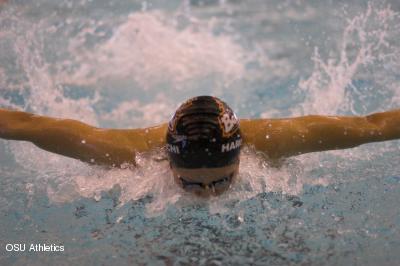 MINNEAPOLIS - OSU sophomore Saori Haruguchi set the school record in the 100-yard butterfly (53.17) during Friday morning’s preliminary round for the Oregon State swim team. Haruguchi was 11th after the prelims and finished 11th overall (53.28), earning All-American honors for the second year in a row. Haruguchi finished sixth in the 200 fly last season to earn the award. Haruguchi’s time of 53.28 in the finals is the second fastest in school history. OSU sits in 32nd place with six heading into the final day of competition. Arizona is in first place overall. “Today was a real good day,” said OSU head coach Larry Liebowitz. “Saori (Haruguchi) did a phenomenal job and continues to excel in her second year with the program.” In other individual action, both Anna Crandall and Brittney Iverson raced in the 200 freestyle. Crandall finished 64th with a time of 1:50.61 and was followed by Iverson in 65th with a time of 1:50.71. The most anticipated event of the day for OSU was the 800 free relay. The foursome of Haruguchi, Crandall, Kayla Rawlings, and Iverson placed 16th (7:17.90). The relay team made school history by qualifying for the NCAA Championships and they clearly did not disappoint on the national stage. Haruguchi, swimming the opening leg of the 800 free relay, recorded a time of 1:48.78. The time is equivalent to a swim in the 200 free and it just falls short of the school record time of 1:48.67 Haruguchi swam in the 800 free relay at the Pacific-10 Championships last month. “It’s the first time we’ve had a relay in the NCAA Championships and the swimmers did real well,” said Liebowitz. “It’s real special what they have done this season and I am real excited for tomorrow.” In the final day of tomorrow’s championships both Haruguchi and Rawlings will be in action for the Beavers. Haruguchi and Rawlings will both swim in the 200 fly. NCAA Championships Standings — Day Two 1. Arizona 375 points 2. Auburn 343 points 3. California 261.5 points 4. Stanford 250 points 5. Georgia 195 points 13. Arizona State 55 points 16. UCLA 37.5 points 26. USC 17 points 32. Oregon State 8 points T-33.Washington 6 points 38. Washington State 3 points