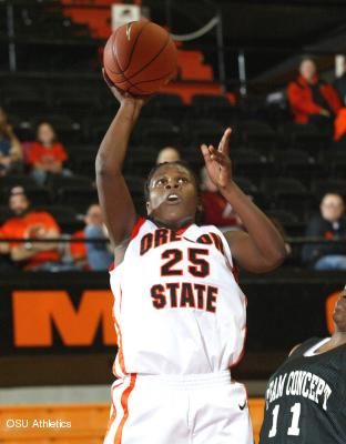 CORVALLIS - Freshman Judie Lomax had 22 rebounds and 15 points, but the Oregon State women’s basketball team saw its last minute rally fall short, as the Beavers dropped their exhibition opener to Team Concept by a 71-68 margin on Wednesday night in Gill Coliseum. OSU trailed by 10 points (62-52) with just under 10 minutes left in the contest, but used a 14-6 run to pull within two (68-66) when freshman Jasmine Smith buried a 3-pointer with 3:33 on the clock. Team Concept failed to connect on three consecutive one-and-one opportunities from the foul line in the game’s final minute, but Oregon State missed a lay-up and turned the ball over three times, making it impossible to recover. “We’re young, we’re learning, and we’ve got to stick with it,” said OSU head coach LaVonda Wagner. “If we make our free throws and lay-ups, we would have won.” The Beavers knocked down 19-of-27 shots from the free throw line while Team Concept hit 9-of-13 freebies. OSU held nearly a 2 to 1 rebounding advantage – pulling down 51 boards compared to Team Concept’s 26. Lomax’s 22 rebounds in her Beaver debut would have broken the school record if the game was a regular season outing. Junior transfer Ashley Allen led Oregon State with 18 points and hit 7-of-14 field goal attempts, while senior Casey Nash chipped in 16 points and eight rebounds. Team Concept’s Sheila Lambert led all players with 24 points and five assists. All five Oregon State starters – Lomax, Nash, Allen, Mercedes Fox-Griffin, and Stacey Nichols – scored in the first six minutes of the game as the Beavers took a 10-2 lead out of the gates. The score was tied 34-34 at the half.