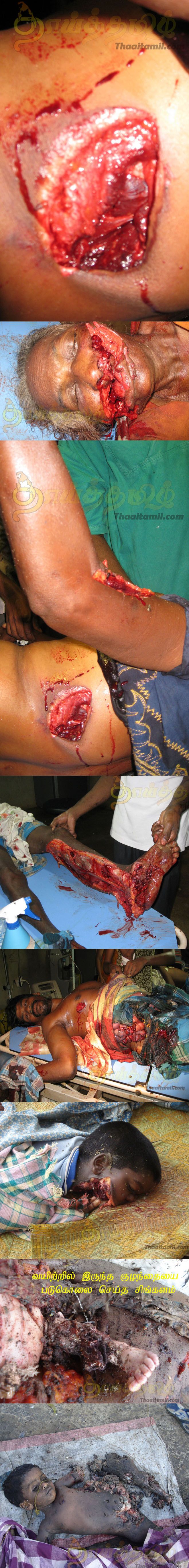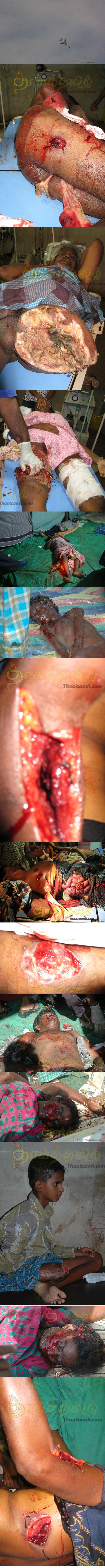 A Very Uncivil War Ghastly Images- Gross Detail and Denial of Sri Lanka's Genocide --These images are beyond graphic-- Before you begin examining these images, know that they are among the most grotesque and disturbing war injuries we have ever seen, the photos are heinous but they are real and these poor people who received the brutal hand of force from the Sri Lanka government are here now to remind us that the price of war and ethnic warfare is boundless. These images are provided by a Tamil contact and from the end of the conflict in 2009: Again, you have been forewarned, these are not simple images of dead bodies, they are images of the most massive and egregious mutilations that have ever been released.